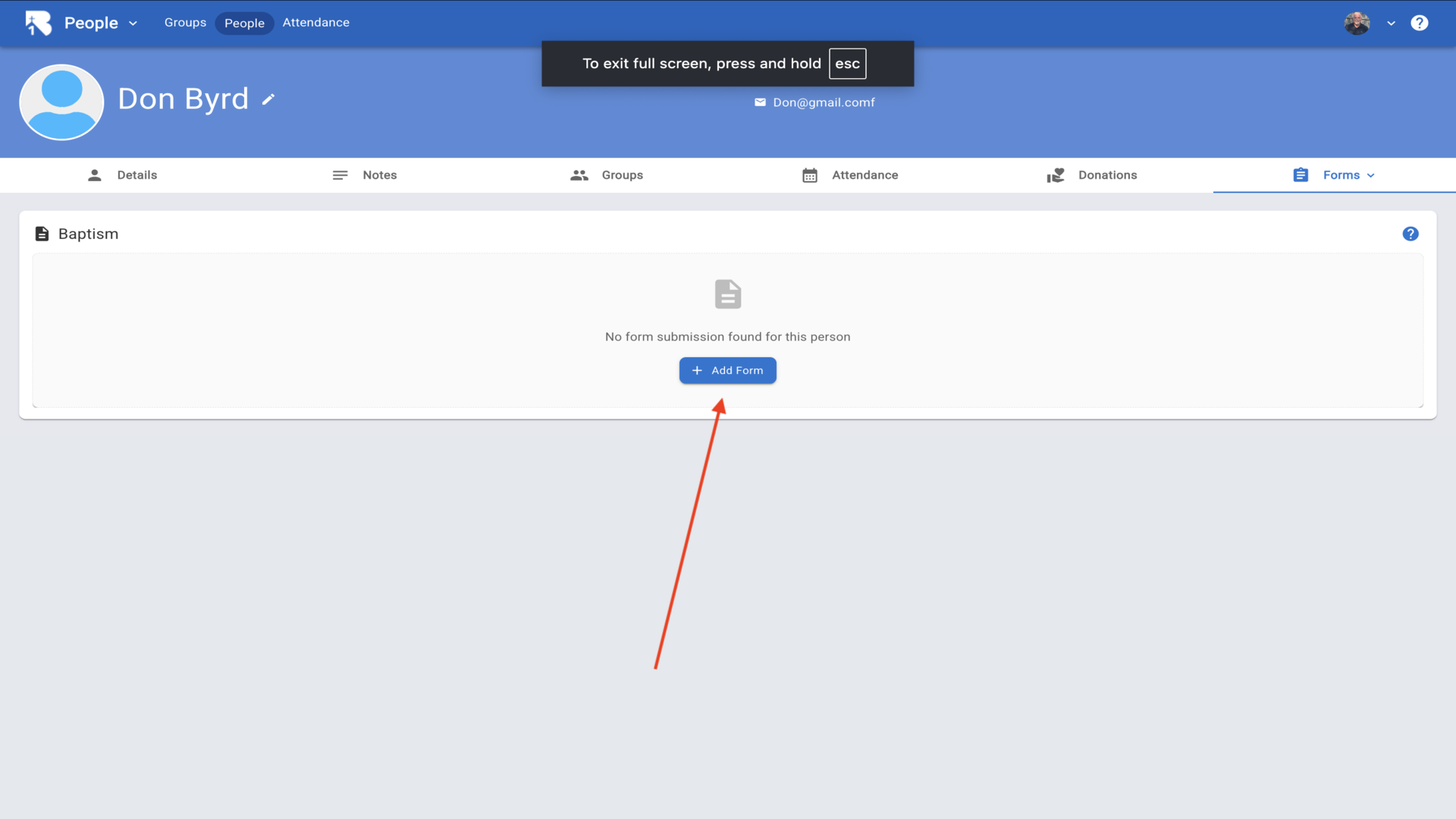Click on the Forms dropdown to select a form to fill out. These forms are user defined forms which you can build by following the forms tutorial