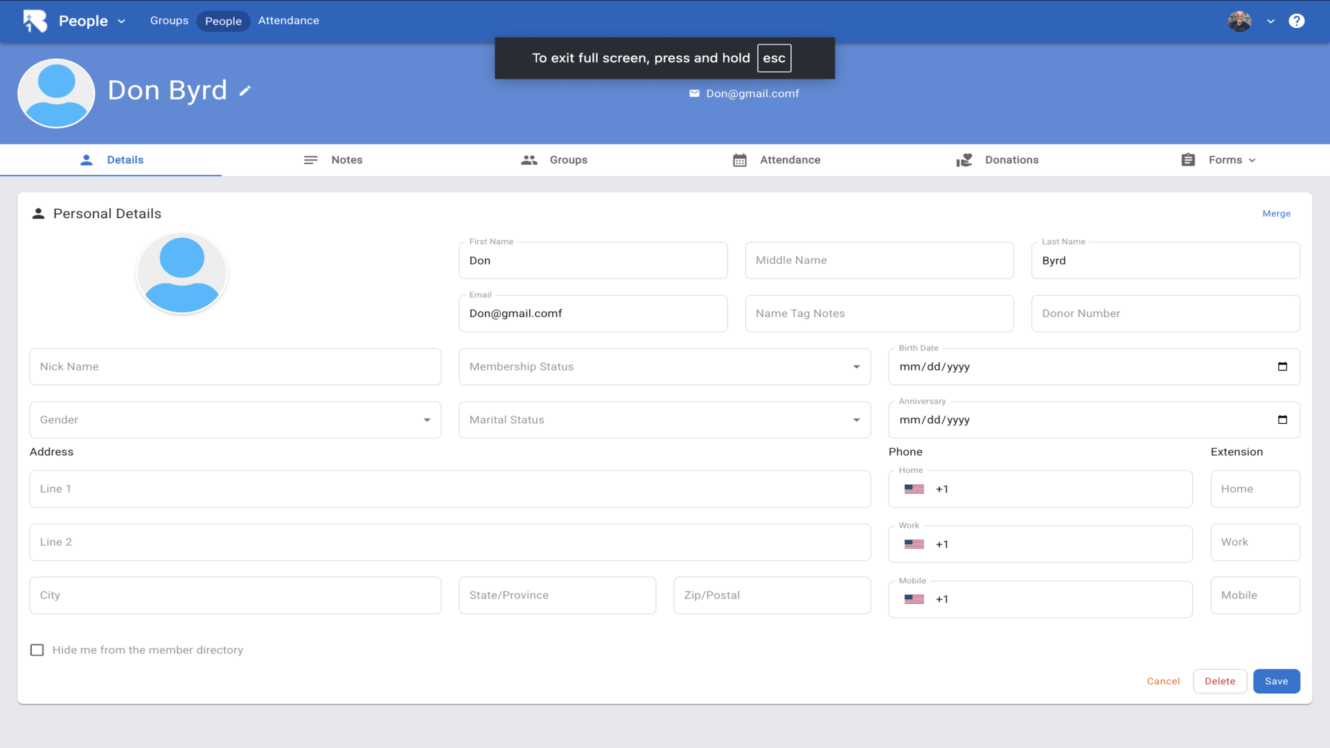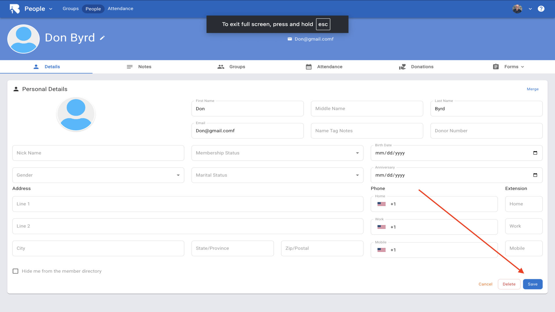 Fill in additional information such as middle name, membership status, dates, address, and phone numbers