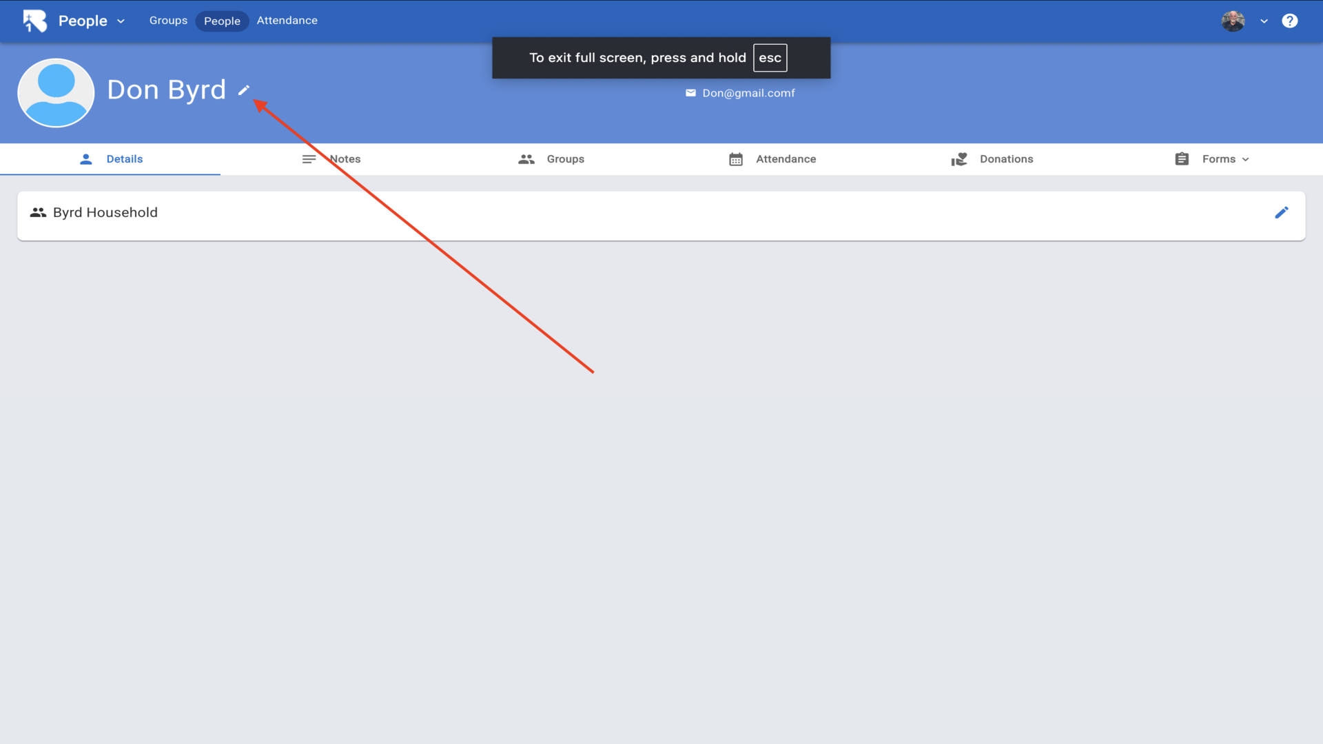 The person's profile page will open. Click the edit pencil next to their name to edit their details
