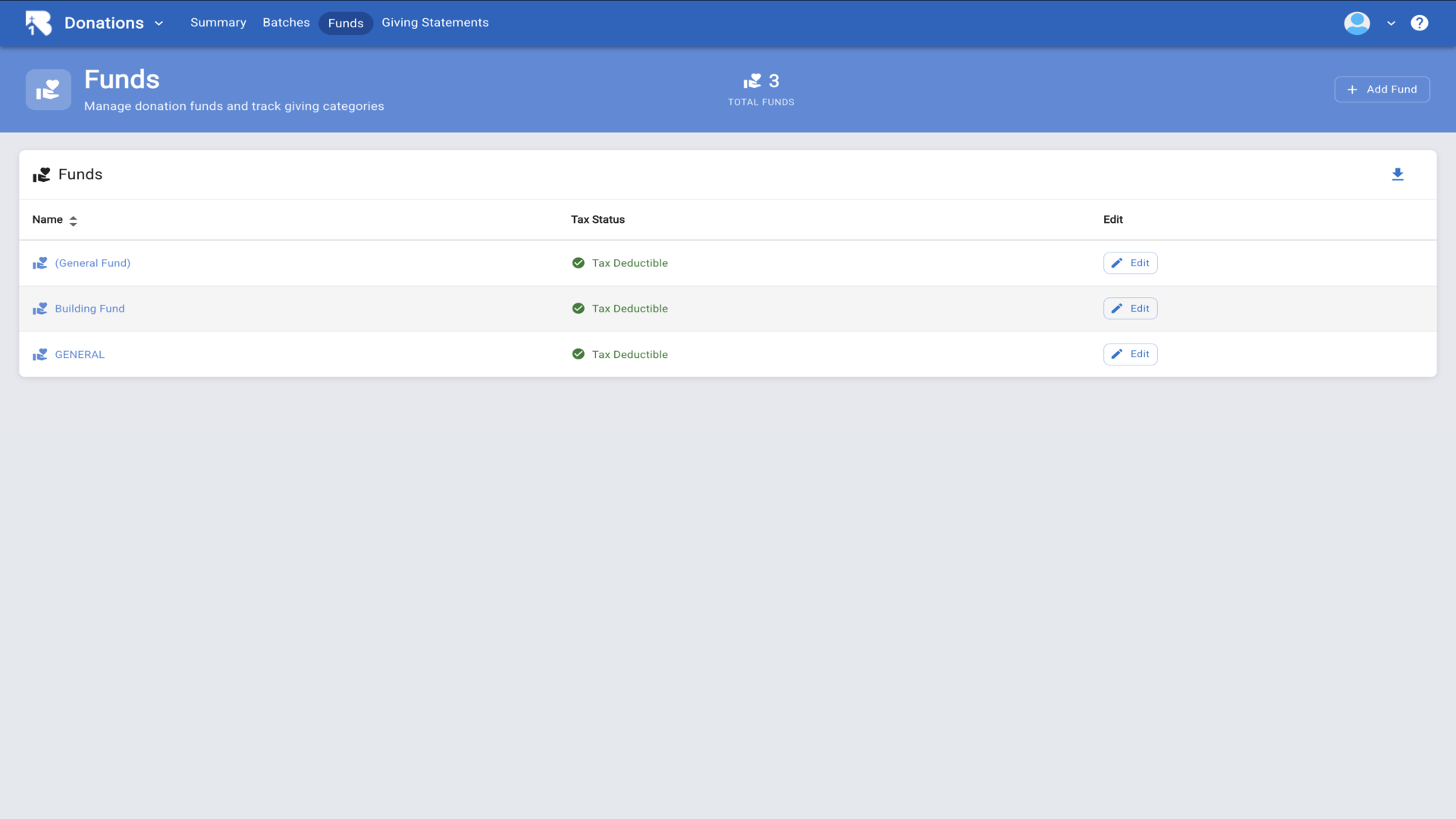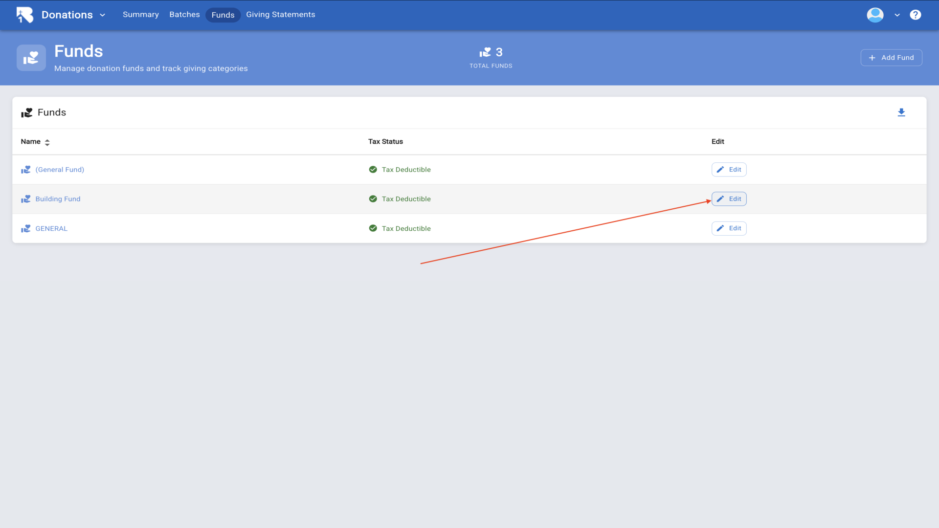 4.Click on Funds to view and manage donation funds.▼