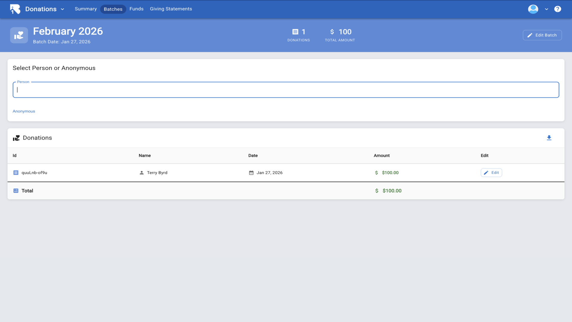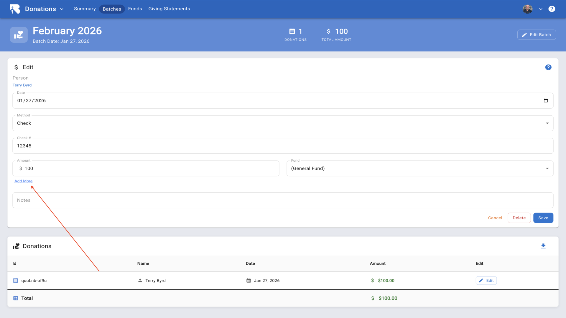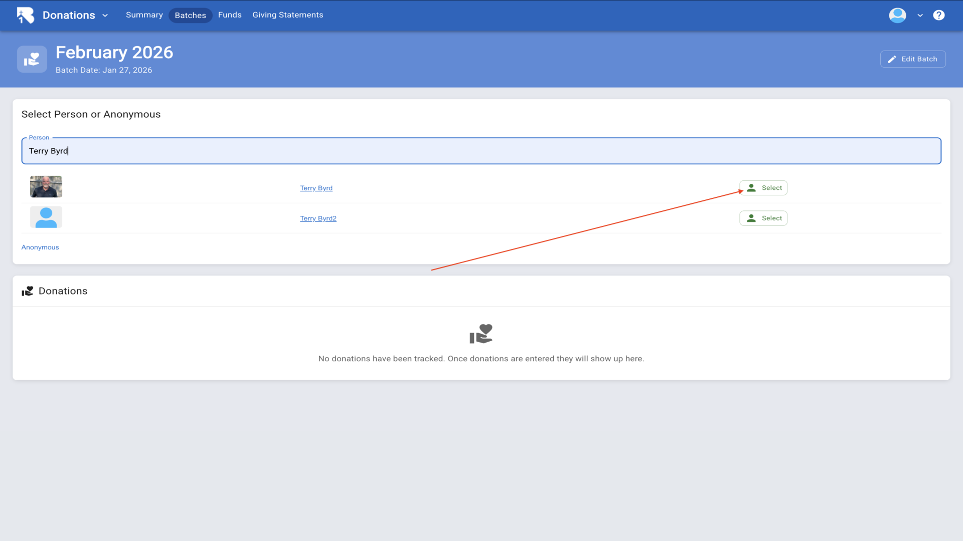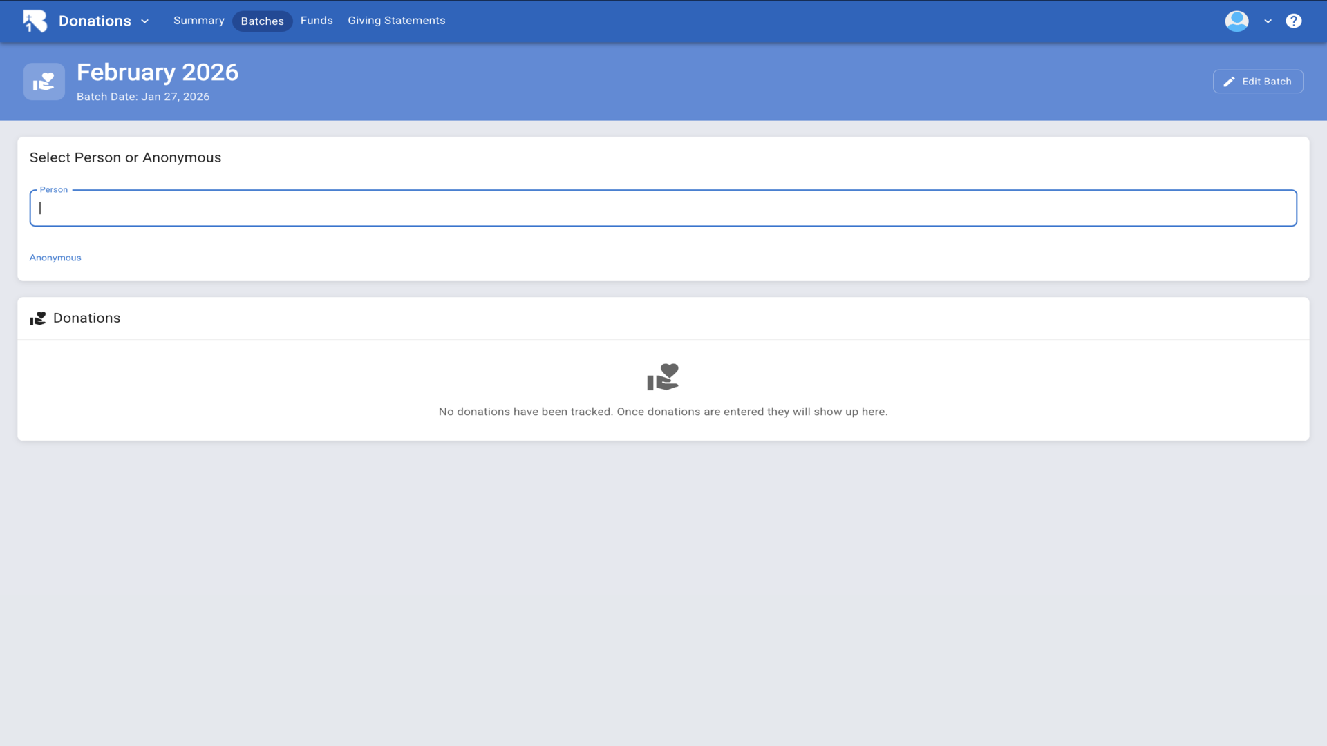 16.Click Add Batch to create a new batch for organizing donations.▼
