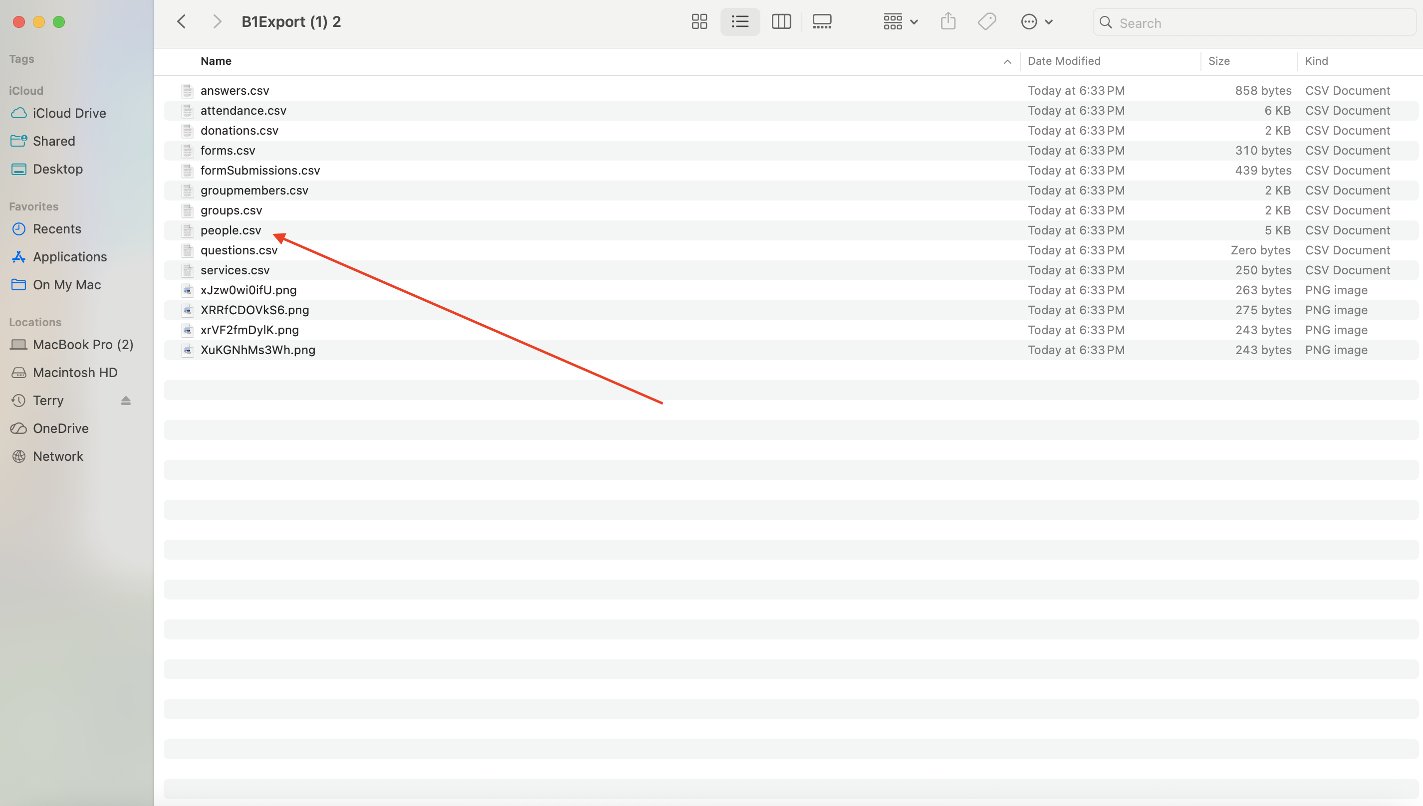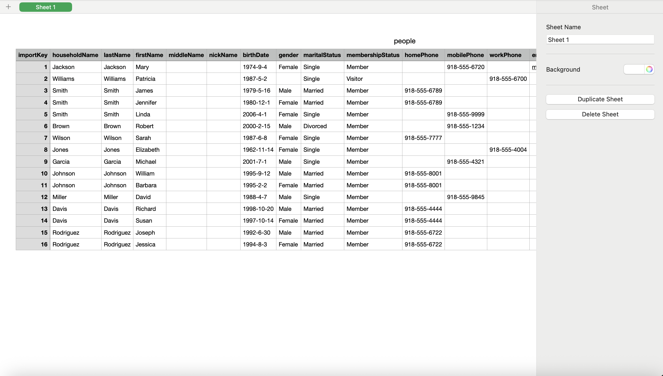 Open CSV files like people.csv with Excel or Numbers to view your exported data