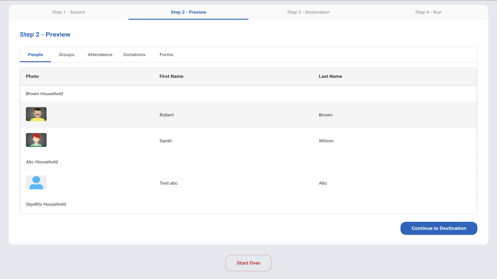 Review the preview of data to be exported and click "Continue to Destination"