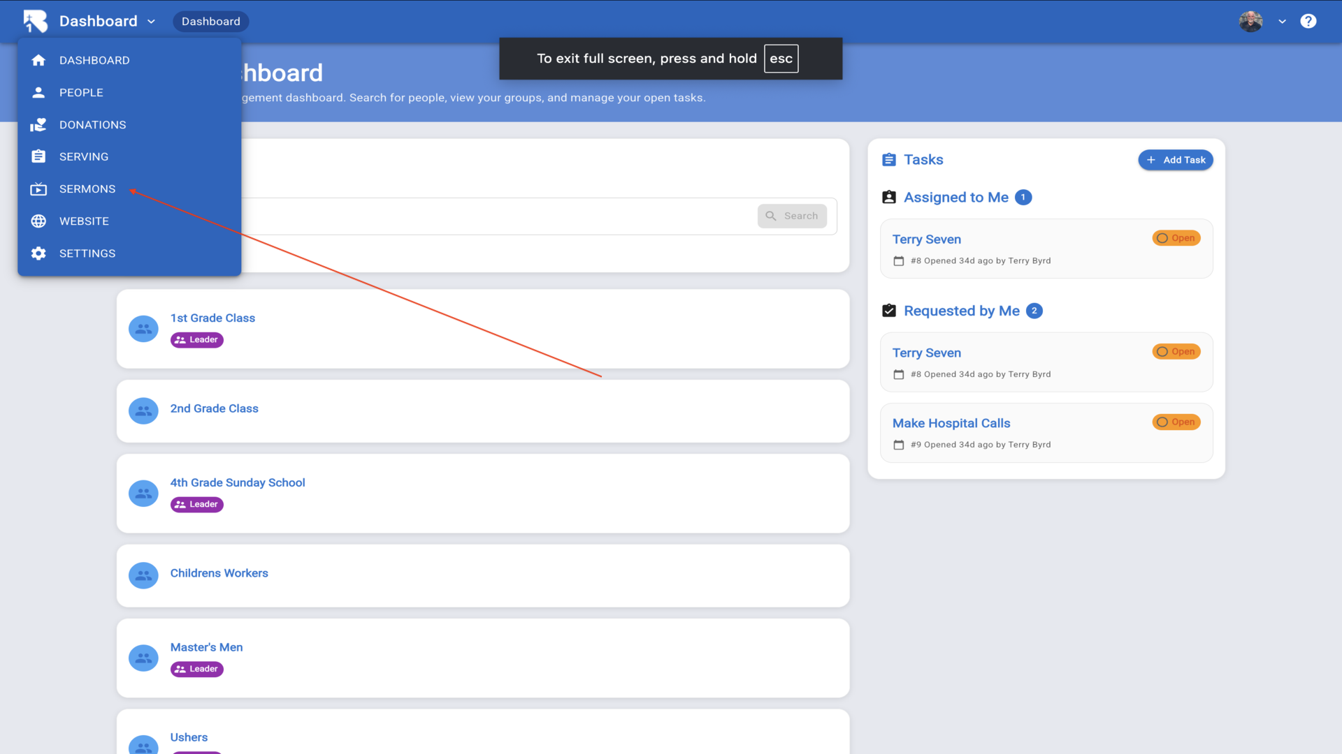 From the Dashboard, click on Sermons in the left sidebar to access your sermon library.
