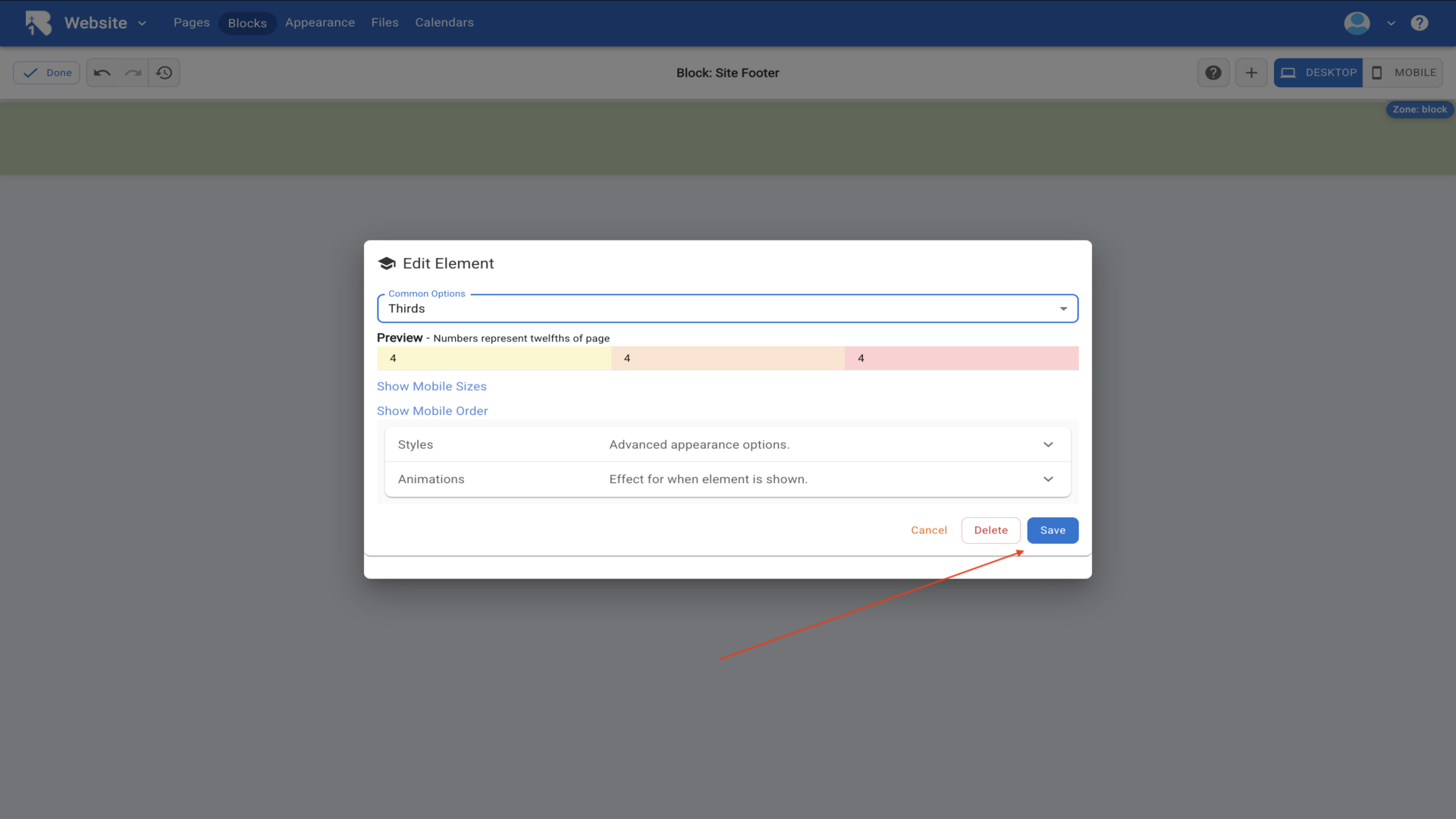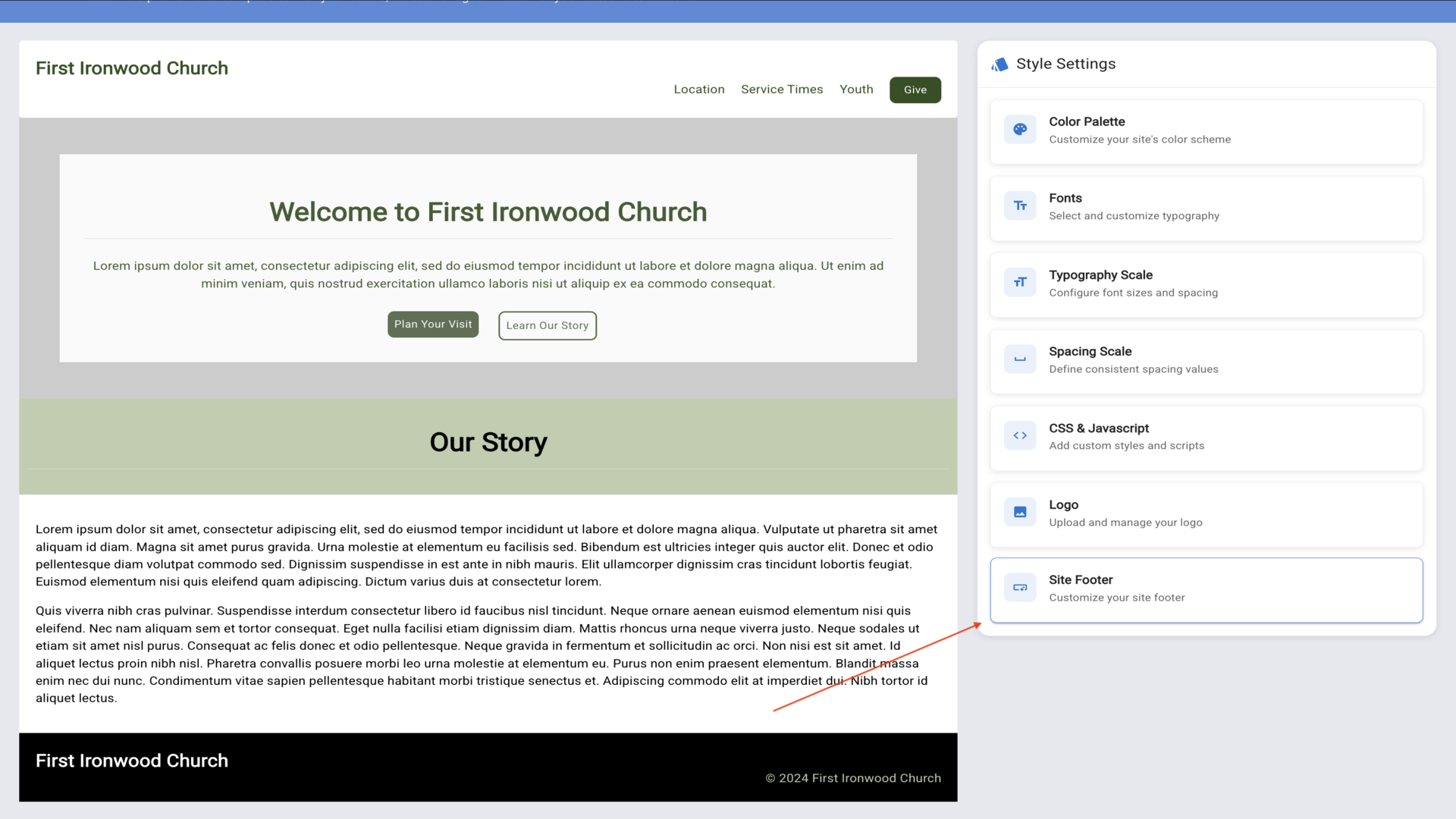 24.Now let's customize the footer. Click Site Footer in the Style Settings.▼