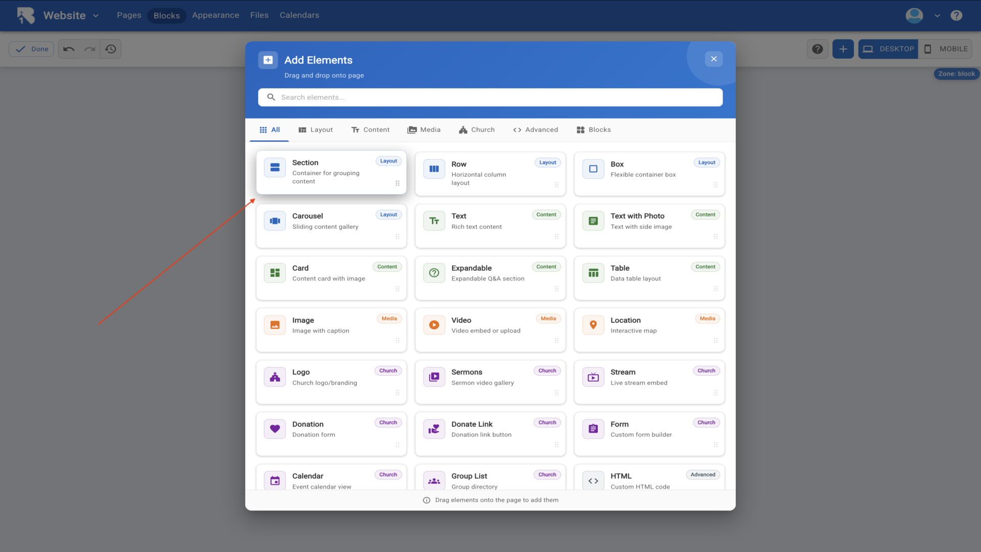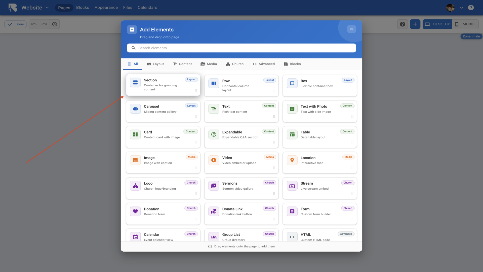 12.Drag a Section onto your page.▼