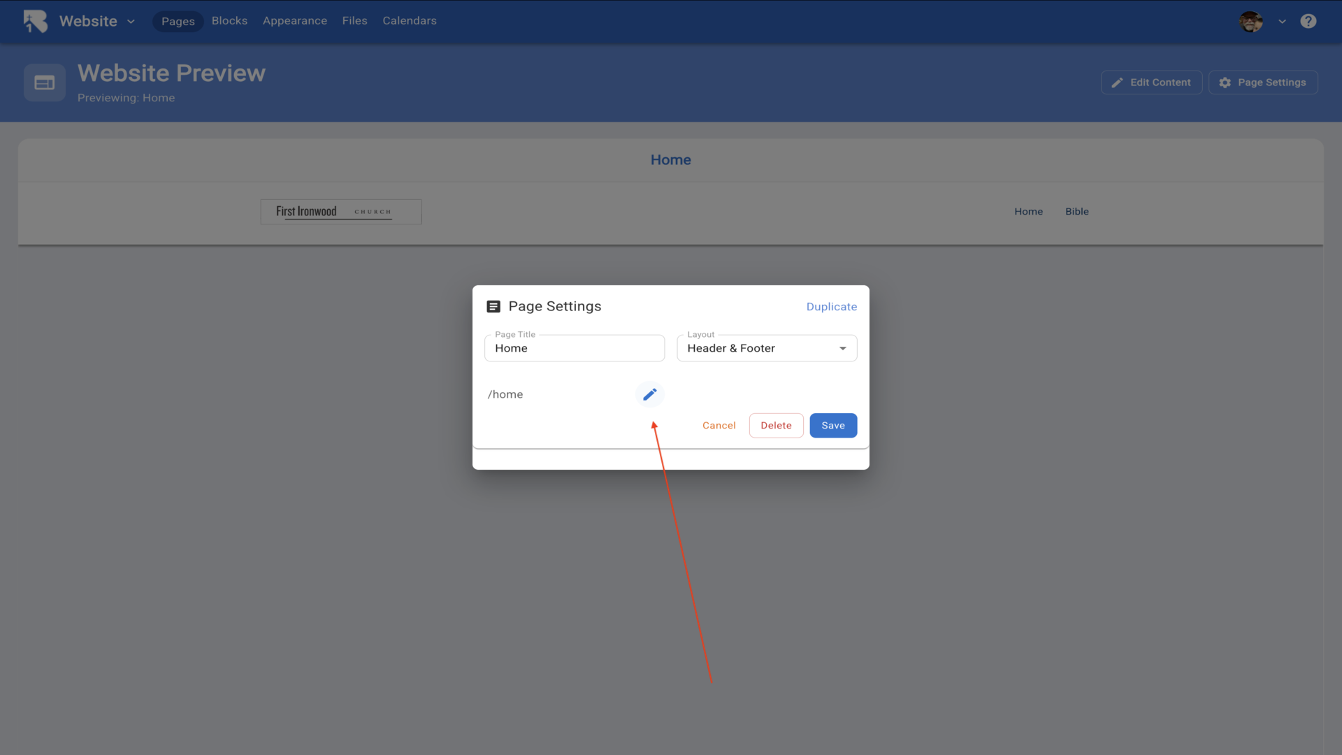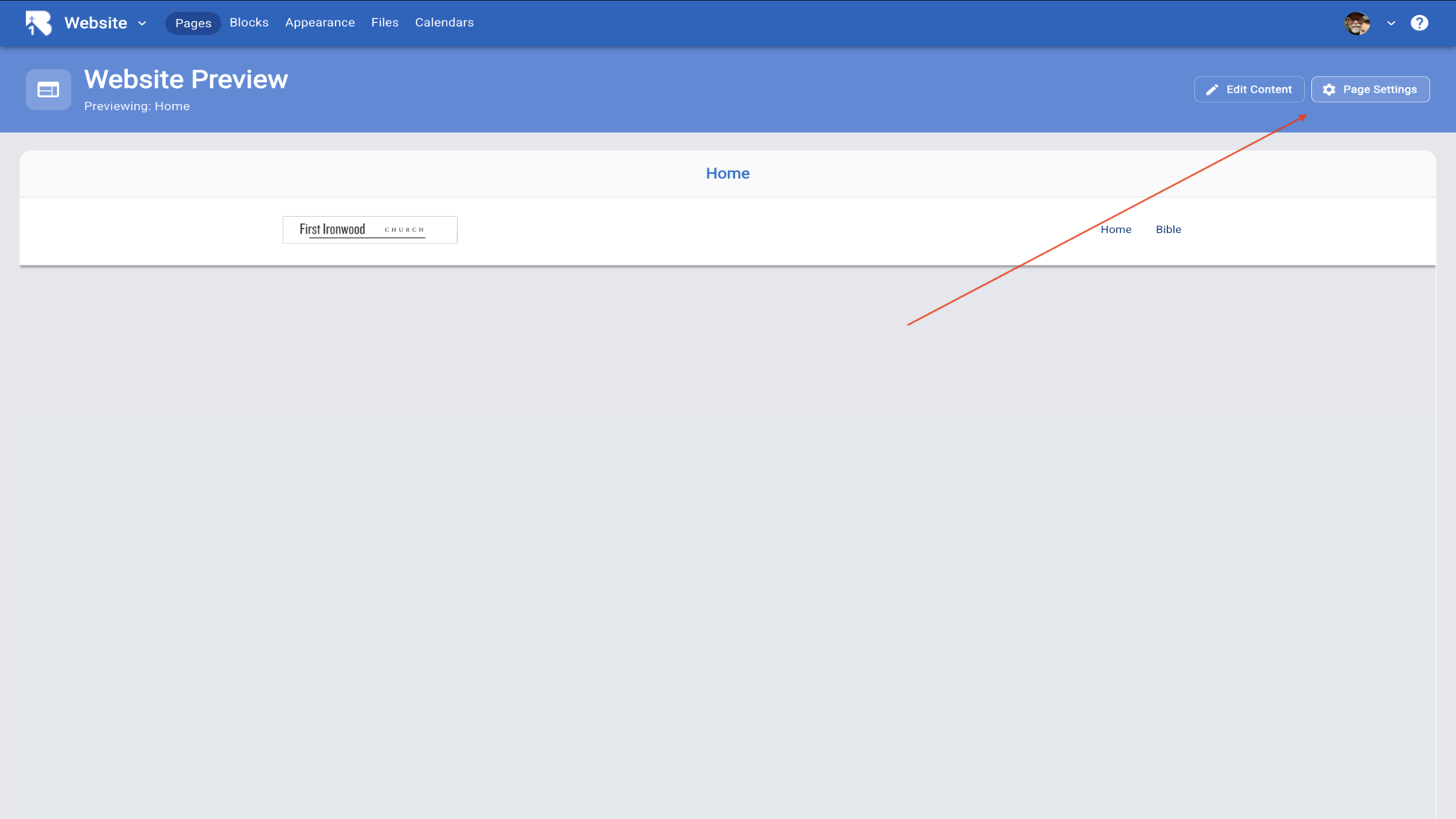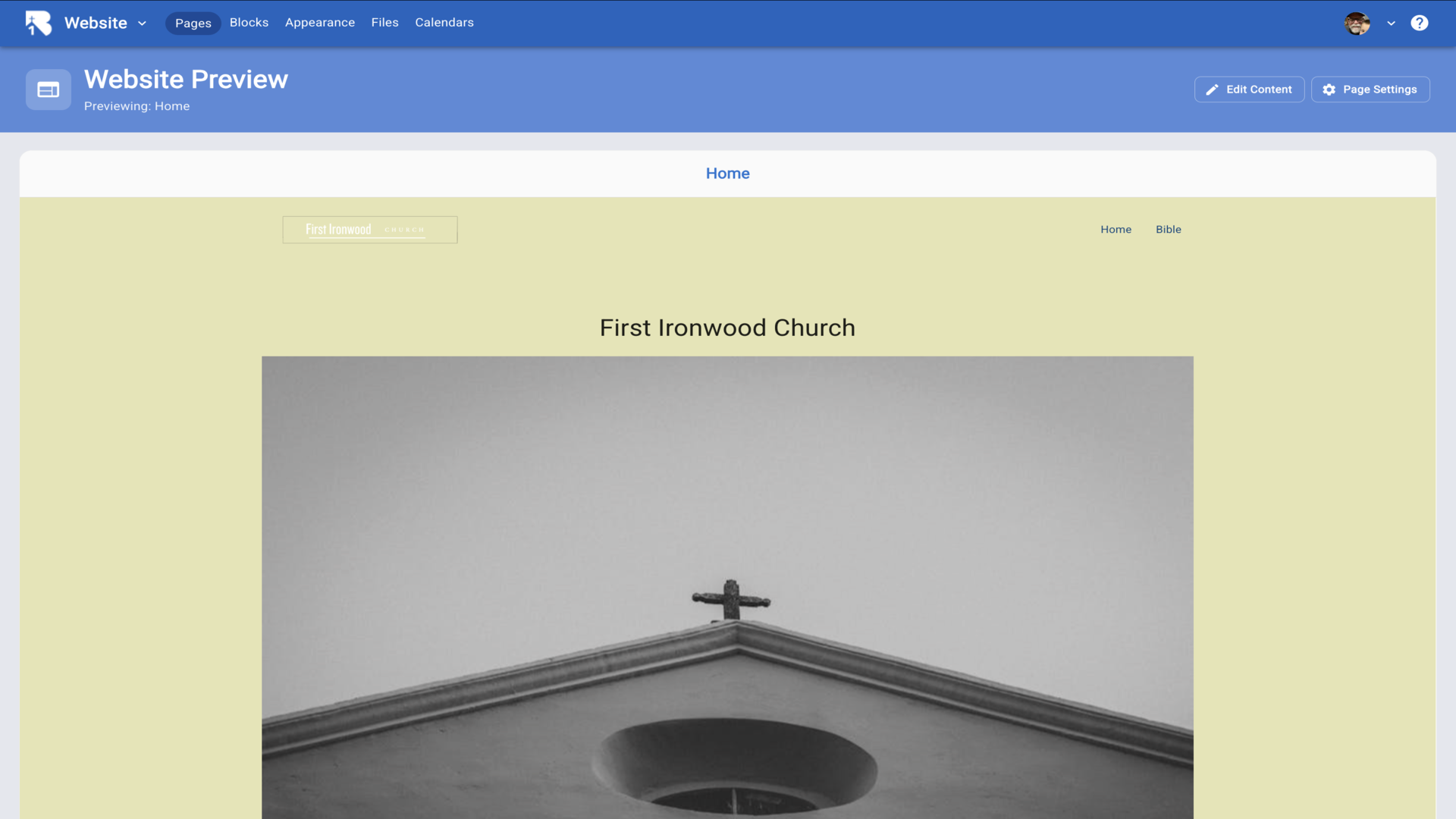 5.Click on manage. Every church that uses B1 has a subdomain assigned to them. In our case, we have chosen "ironwood" as the subdomain for our test church of Ironwood Church. This means we can go to ironwood.b1.church to get to our B1 content.▼