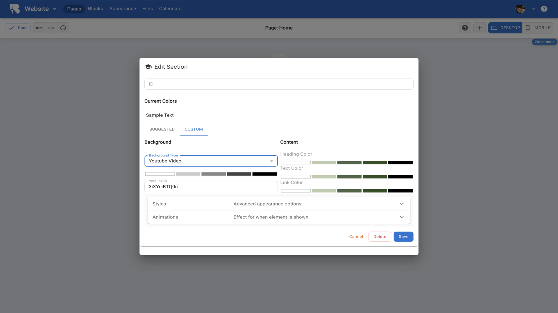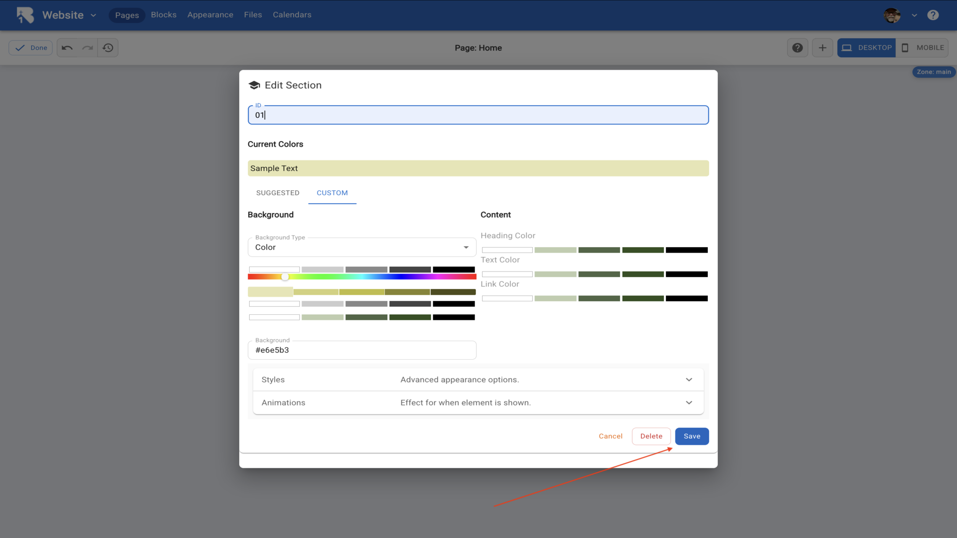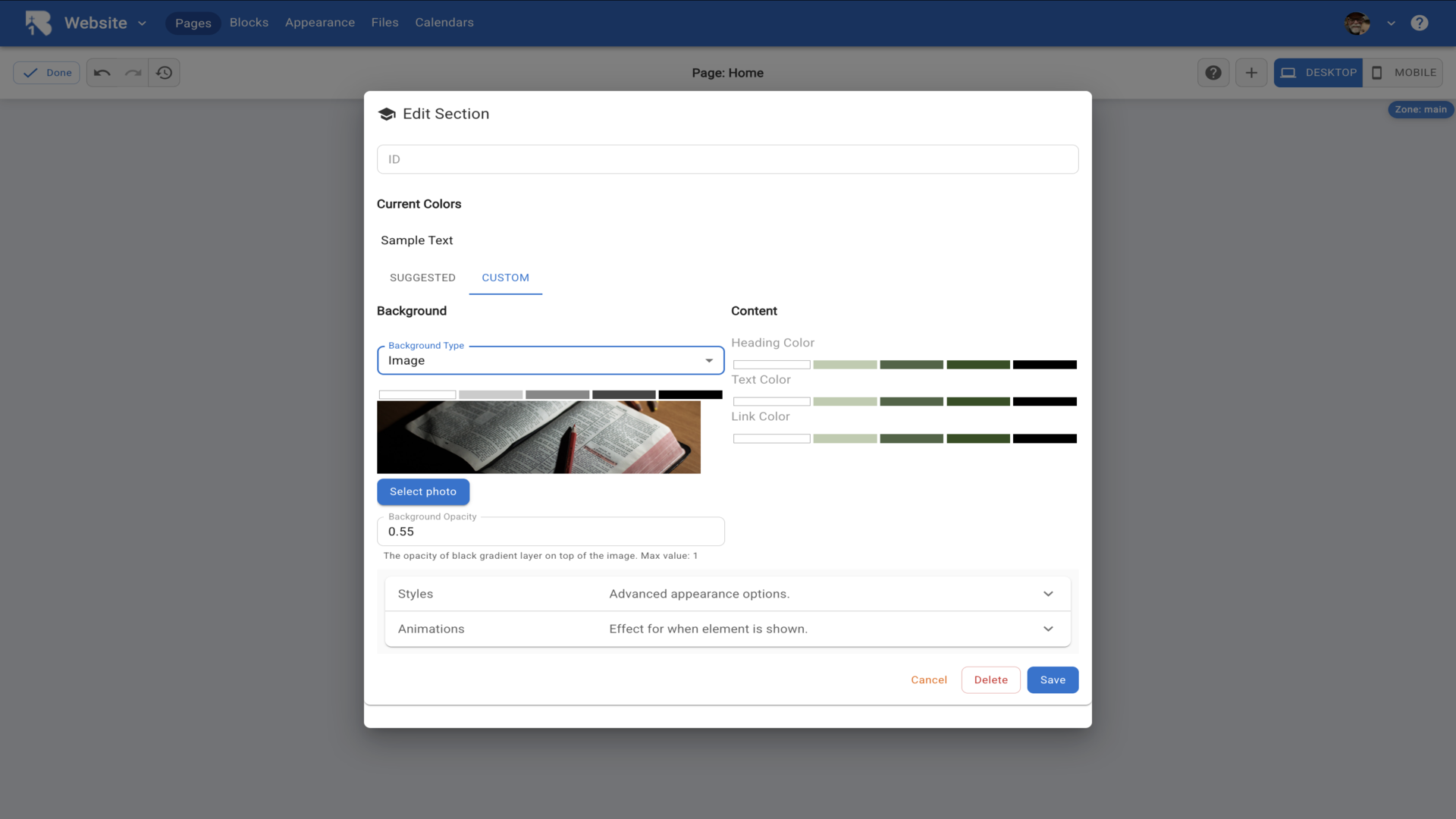 21.Your section displays with the custom background.▼