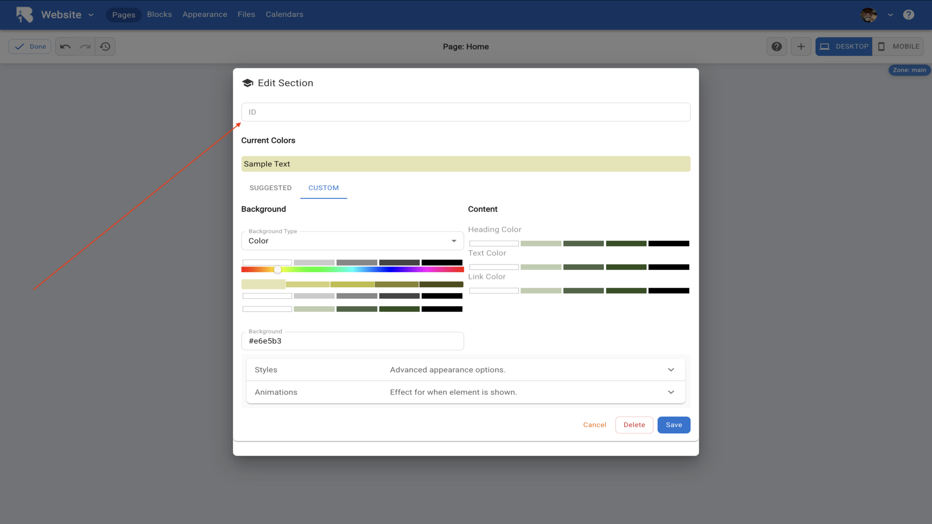 19.Add an optional section ID for advanced styling.▼