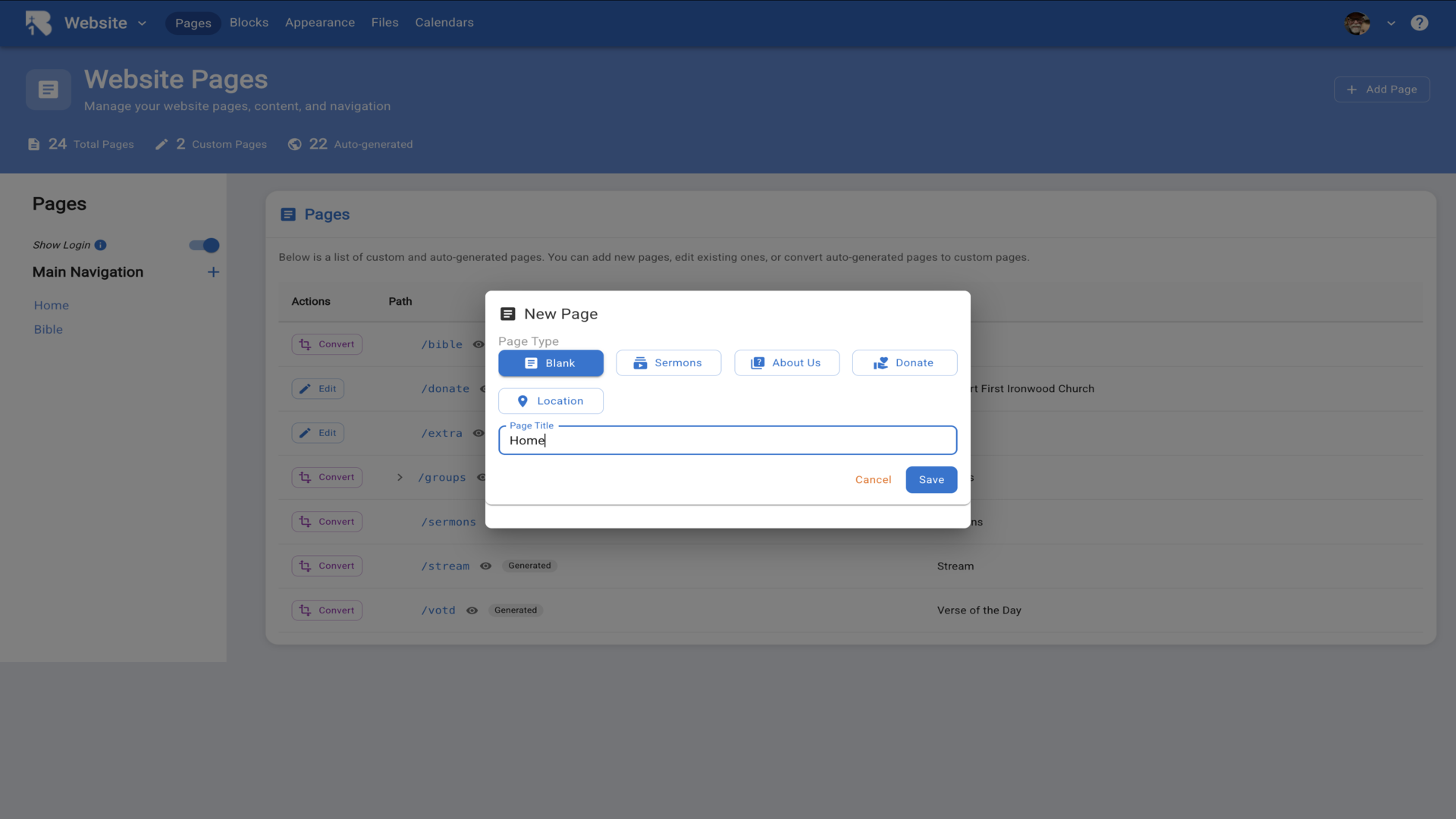 3.Choose blank as the page type and name it Home.▼